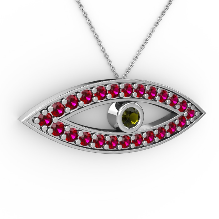 Peridot ve rodolit garnet 8 ayar beyaz altın kolye (40 cm beyaz altın rolo zincir)