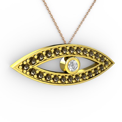 Pırlanta ve dumanlı kuvars 18 ayar altın kolye (0.036 karat, 40 cm rose altın rolo zincir)