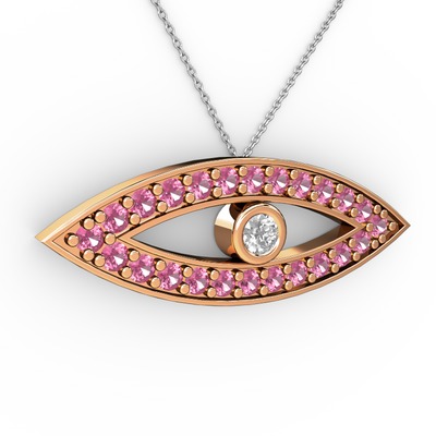 Pırlanta ve pembe kuvars 8 ayar rose altın kolye (0.036 karat, 40 cm gümüş rolo zincir)