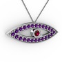 Rodolit garnet ve ametist 14 ayar beyaz altın kolye (40 cm gümüş rolo zincir)