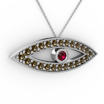 Rodolit garnet ve dumanlı kuvars 18 ayar beyaz altın kolye (40 cm beyaz altın rolo zincir)