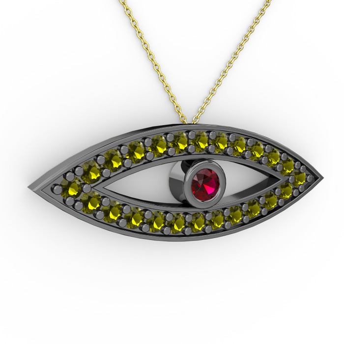Rodolit garnet ve peridot 925 ayar siyah rodyum kaplama gümüş kolye (40 cm altın rolo zincir)