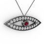 Rodolit garnet ve pırlanta 925 ayar siyah rodyum kaplama gümüş kolye (0.264 karat, 40 cm gümüş rolo zincir)