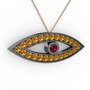 Rodolit garnet ve sitrin 925 ayar siyah rodyum kaplama gümüş kolye (40 cm rose altın rolo zincir)