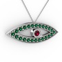 Rodolit garnet ve yeşil kuvars 18 ayar beyaz altın kolye (40 cm beyaz altın rolo zincir)