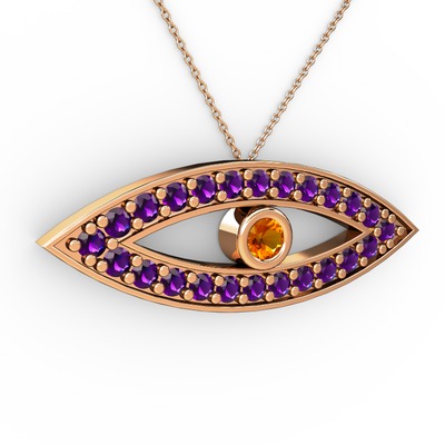 Sitrin ve ametist 8 ayar rose altın kolye (40 cm rose altın rolo zincir)