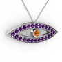 Sitrin ve ametist 925 ayar gümüş kolye (40 cm beyaz altın rolo zincir)