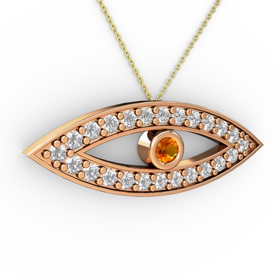 Sitrin ve beyaz zirkon 18 ayar rose altın kolye (40 cm gümüş rolo zincir)