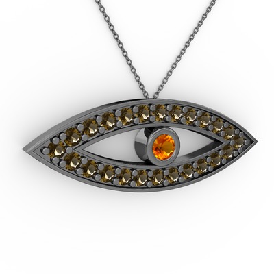 Sitrin ve dumanlı kuvars 925 ayar siyah rodyum kaplama gümüş kolye (40 cm gümüş rolo zincir)