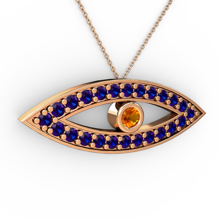 Sitrin ve lab safir 18 ayar rose altın kolye (40 cm rose altın rolo zincir)