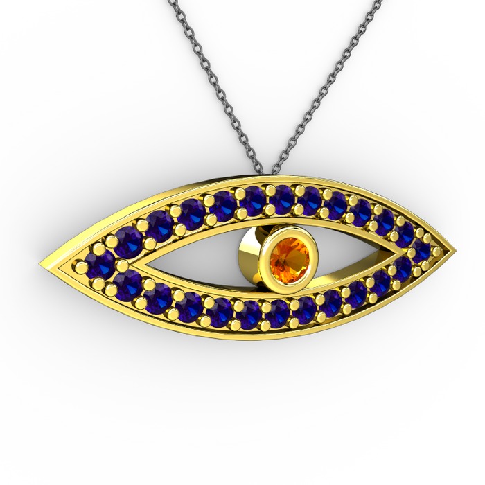 Sitrin ve lab safir 8 ayar altın kolye (40 cm gümüş rolo zincir)
