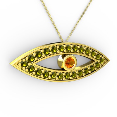 Sitrin ve peridot 14 ayar altın kolye (40 cm altın rolo zincir)