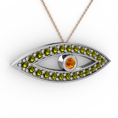 Sitrin ve peridot 8 ayar beyaz altın kolye (40 cm rose altın rolo zincir)