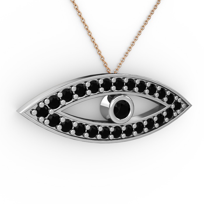 Siyah zirkon 8 ayar beyaz altın kolye (40 cm rose altın rolo zincir)