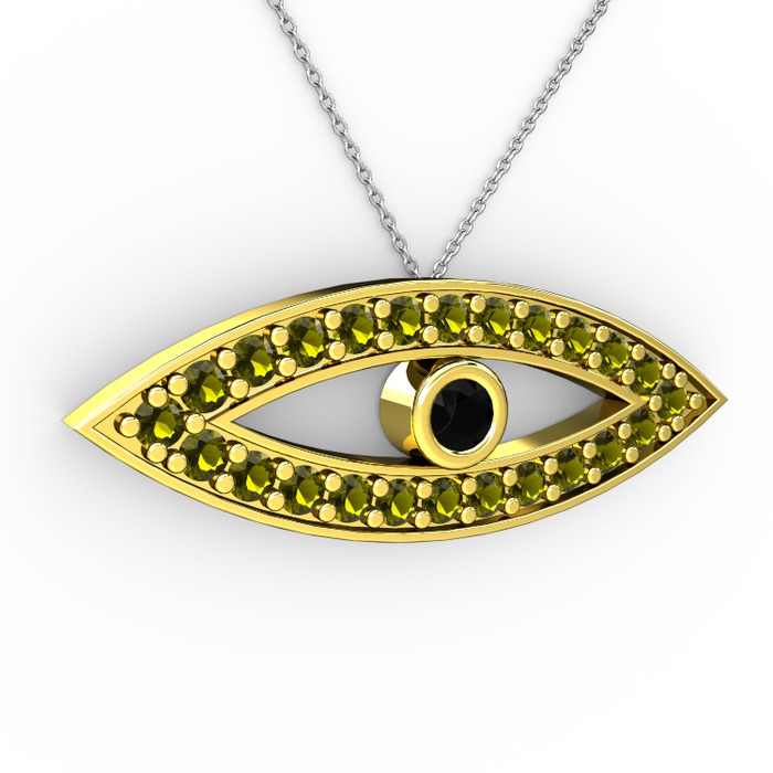Siyah zirkon ve peridot 925 ayar altın kaplama gümüş kolye (40 cm beyaz altın rolo zincir)