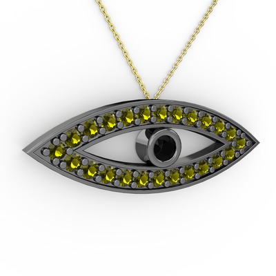 Siyah zirkon ve peridot 925 ayar siyah rodyum kaplama gümüş kolye (40 cm altın rolo zincir)