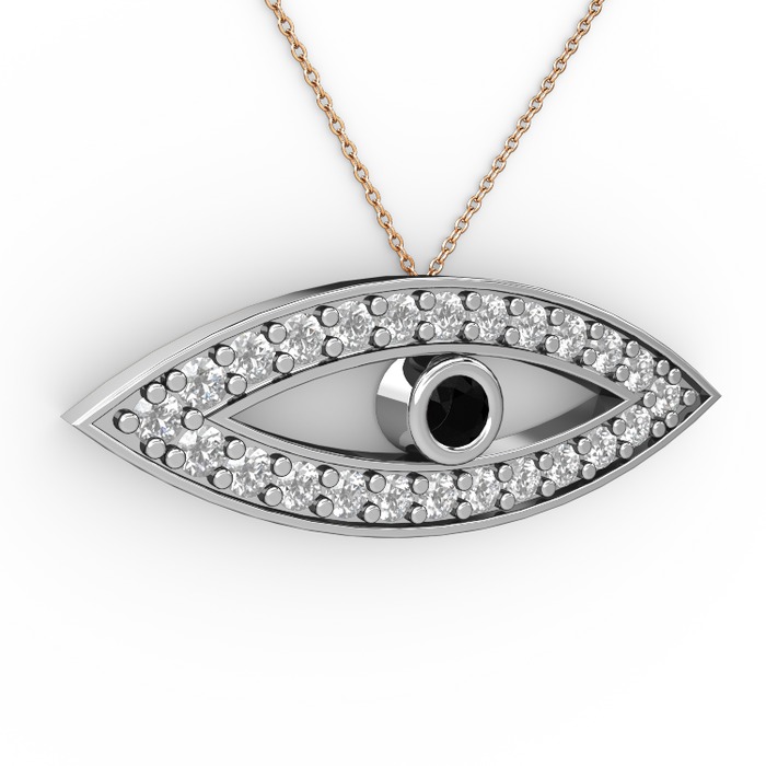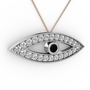 Siyah zirkon ve pırlanta 14 ayar beyaz altın kolye (0.264 karat, 40 cm rose altın rolo zincir)