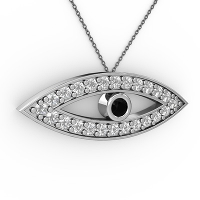 Siyah zirkon ve pırlanta 925 ayar gümüş kolye (0.264 karat, 40 cm gümüş rolo zincir)
