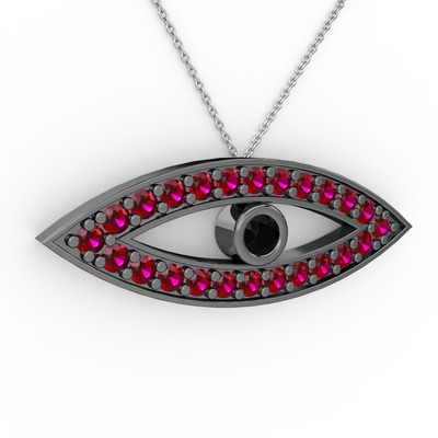 Siyah zirkon ve rodolit garnet 925 ayar siyah rodyum kaplama gümüş kolye (40 cm gümüş rolo zincir)