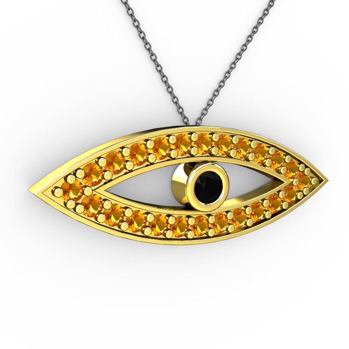 Siyah zirkon ve sitrin 8 ayar altın kolye (40 cm gümüş rolo zincir)