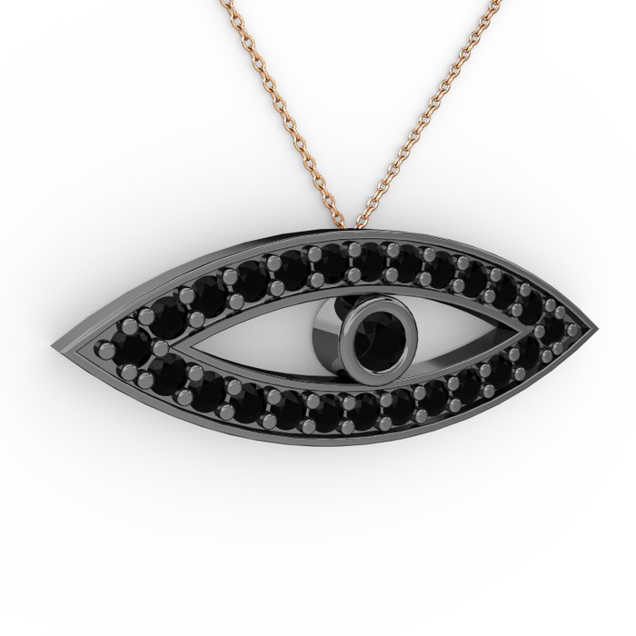 Siyah zirkon 925 ayar siyah rodyum kaplama gümüş kolye (40 cm rose altın rolo zincir)
