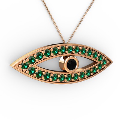 Siyah zirkon ve yeşil kuvars 18 ayar rose altın kolye (40 cm gümüş rolo zincir)