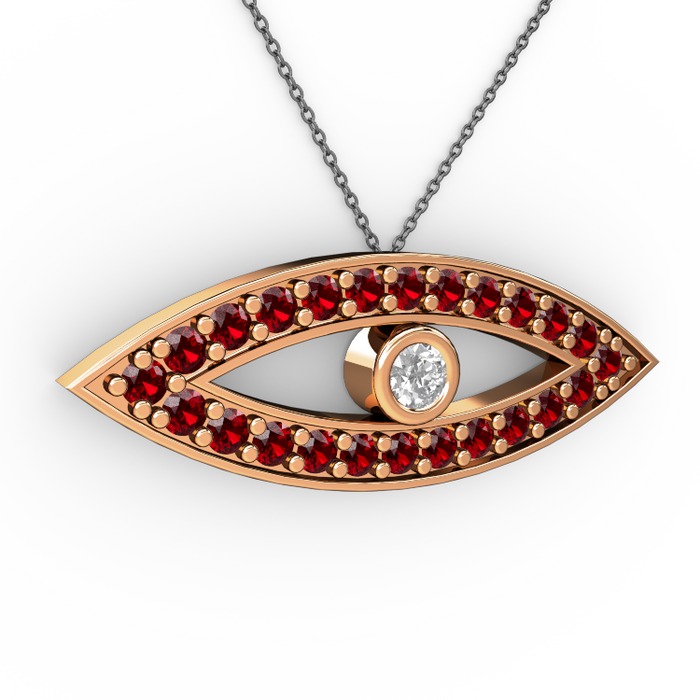 Swarovski ve garnet 8 ayar rose altın kolye (40 cm gümüş rolo zincir)