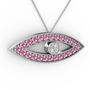 Swarovski ve pembe kuvars 18 ayar beyaz altın kolye (40 cm beyaz altın rolo zincir)