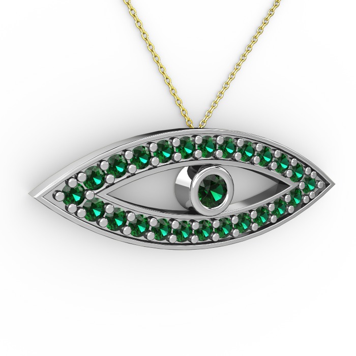 Yeşil kuvars 14 ayar beyaz altın kolye (40 cm gümüş rolo zincir)