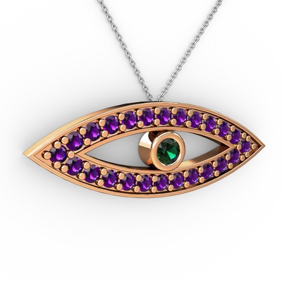 Yeşil kuvars ve ametist 8 ayar rose altın kolye (40 cm beyaz altın rolo zincir)