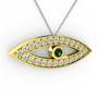 Yeşil kuvars ve beyaz zirkon 14 ayar altın kolye (40 cm beyaz altın rolo zincir)