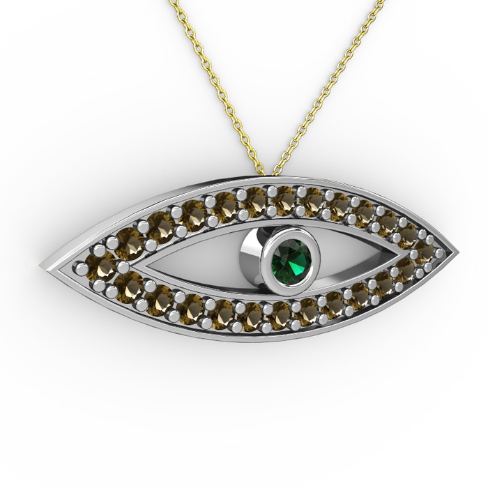 Yeşil kuvars ve dumanlı kuvars 18 ayar beyaz altın kolye (40 cm gümüş rolo zincir)