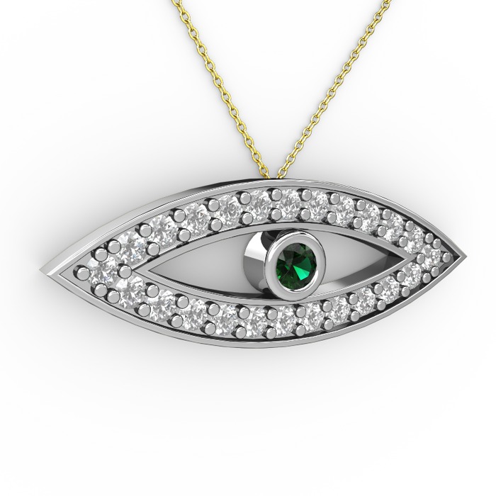Yeşil kuvars ve pırlanta 14 ayar beyaz altın kolye (0.264 karat, 40 cm gümüş rolo zincir)