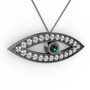 Yeşil kuvars ve pırlanta 925 ayar siyah rodyum kaplama gümüş kolye (0.264 karat, 40 cm gümüş rolo zincir)