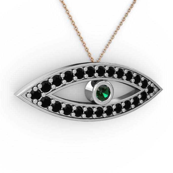 Yeşil kuvars ve siyah zirkon 8 ayar beyaz altın kolye (40 cm rose altın rolo zincir)