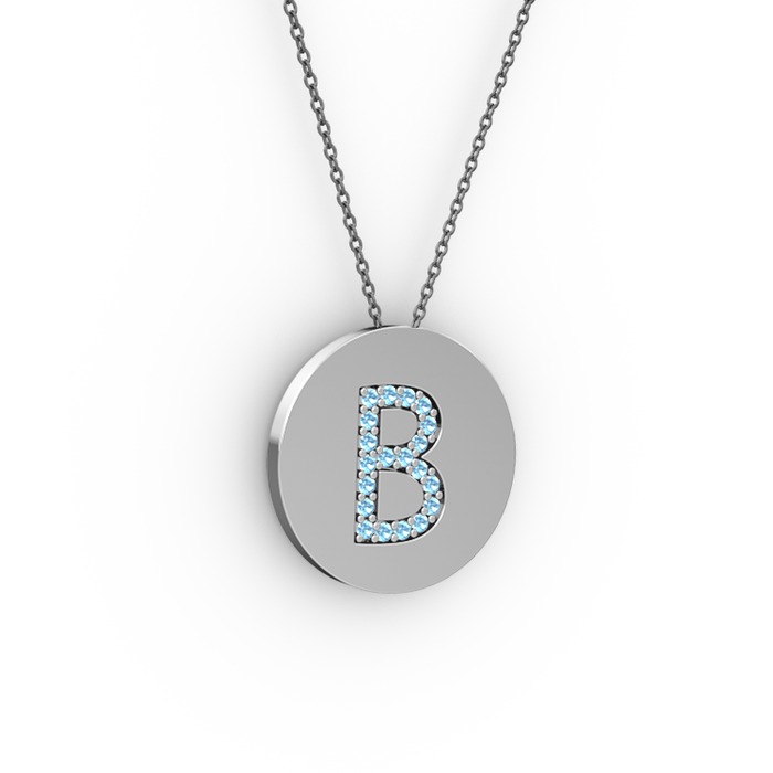 Akuamarin 14 ayar beyaz altın kolye (40 cm gümüş rolo zincir)