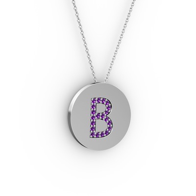 Ametist 925 ayar gümüş kolye (40 cm beyaz altın rolo zincir)