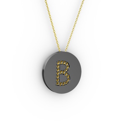 Dumanlı kuvars 925 ayar siyah rodyum kaplama gümüş kolye (40 cm altın rolo zincir)