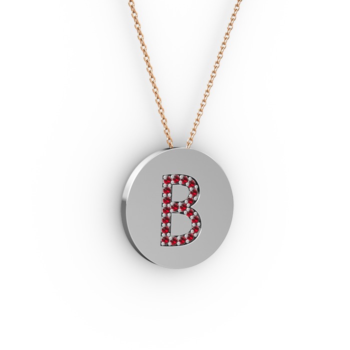 Garnet 14 ayar beyaz altın kolye (40 cm rose altın rolo zincir)