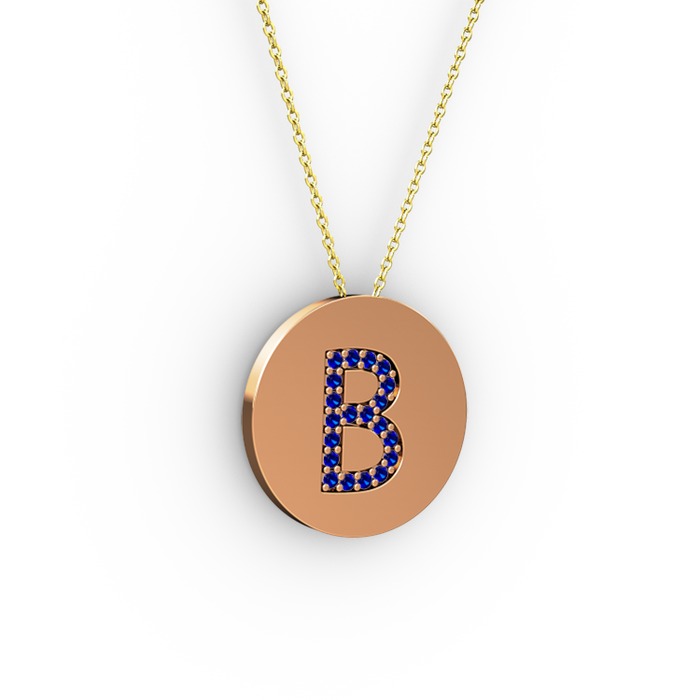 Lab safir 14 ayar rose altın kolye (40 cm altın rolo zincir)