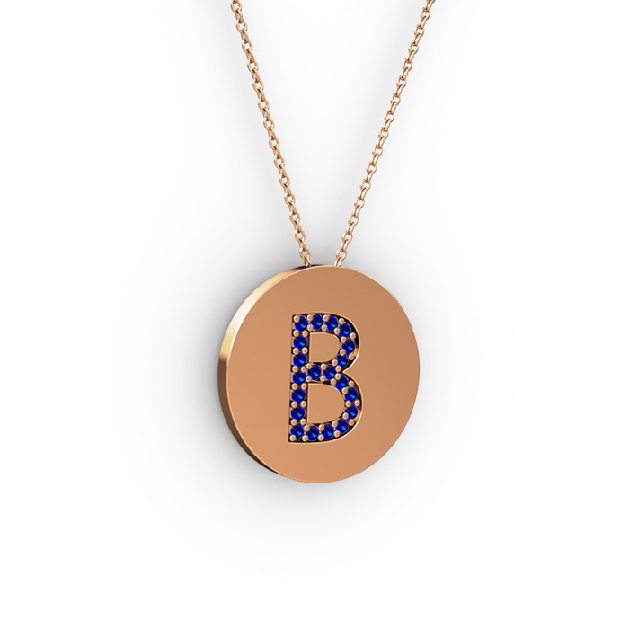 Lab safir 8 ayar rose altın kolye (40 cm rose altın rolo zincir)