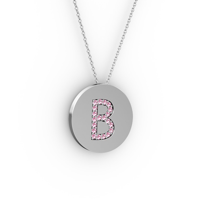 Pembe kuvars 14 ayar beyaz altın kolye (40 cm beyaz altın rolo zincir)