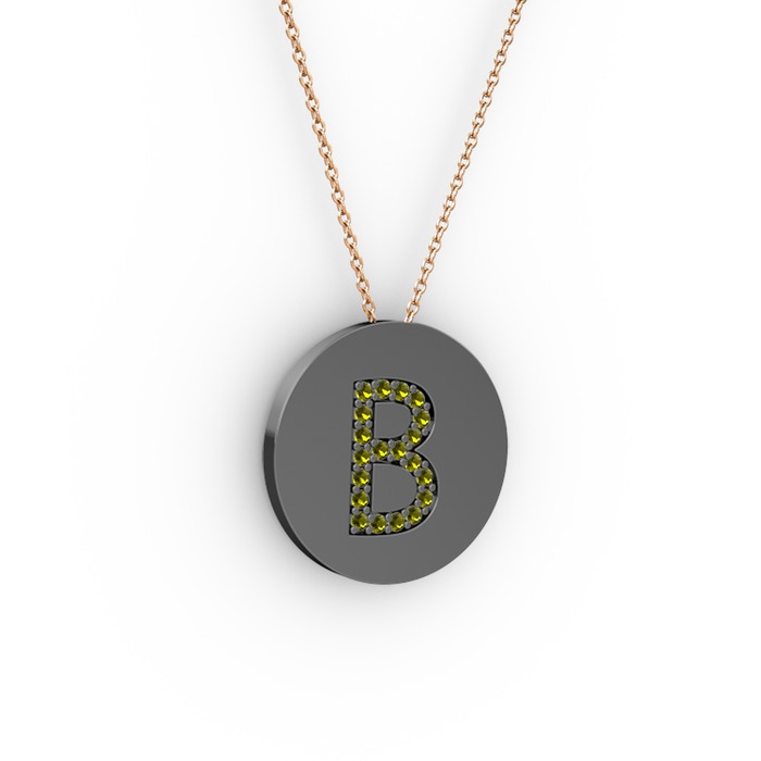 Peridot 925 ayar siyah rodyum kaplama gümüş kolye (40 cm rose altın rolo zincir)
