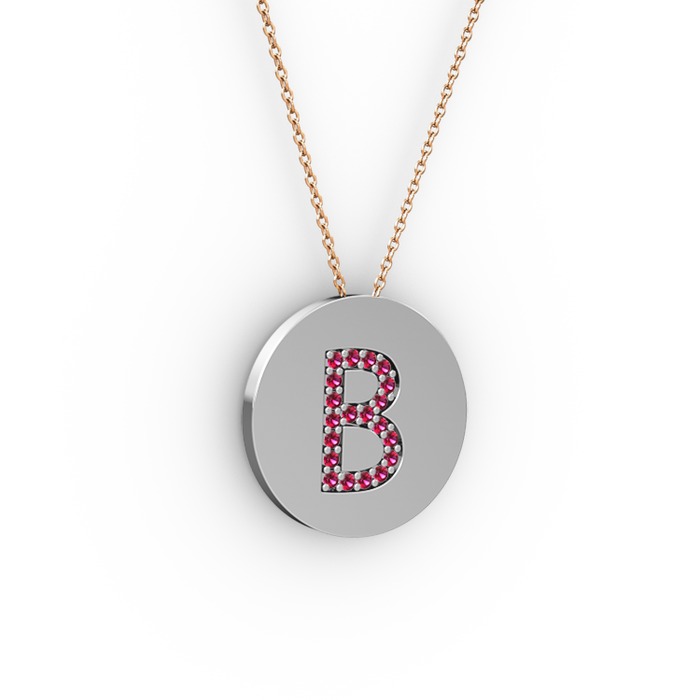 Rodolit garnet 8 ayar beyaz altın kolye (40 cm rose altın rolo zincir)