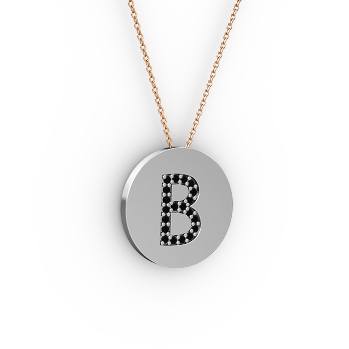 Siyah zirkon 14 ayar beyaz altın kolye (40 cm rose altın rolo zincir)