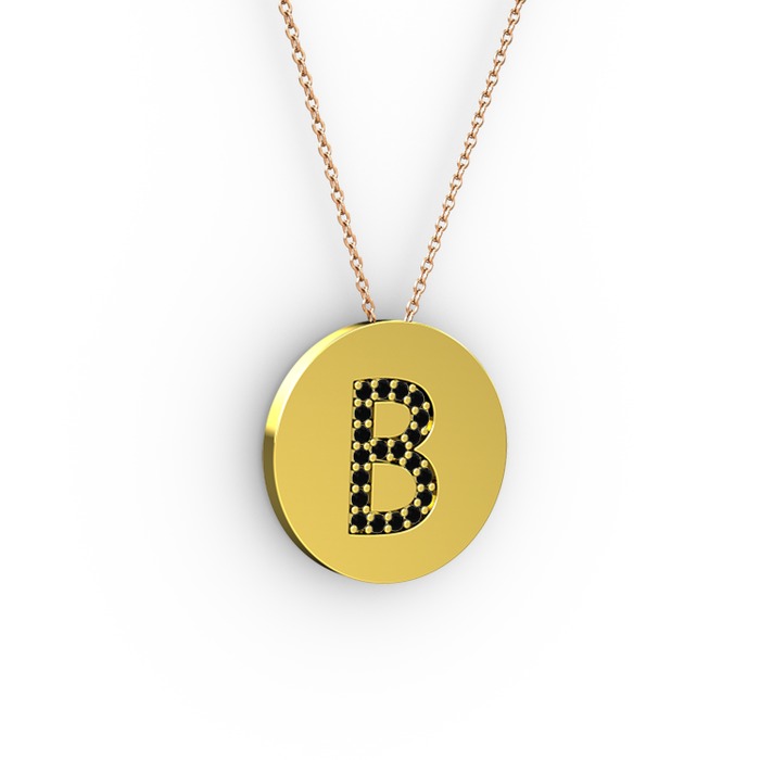 Siyah zirkon 18 ayar altın kolye (40 cm rose altın rolo zincir)