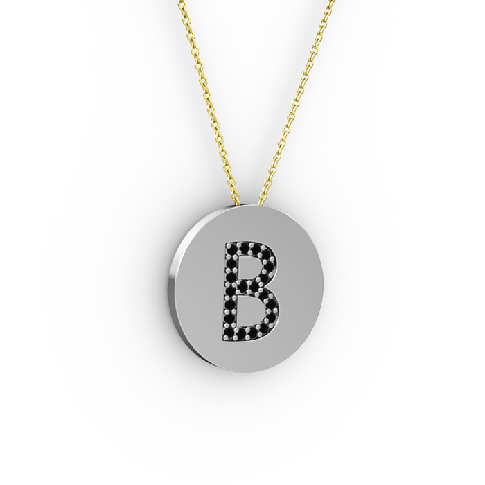 Siyah zirkon 925 ayar gümüş kolye (40 cm altın rolo zincir)