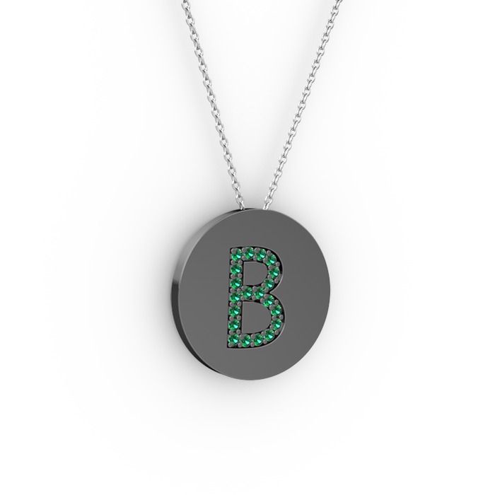 Yeşil kuvars 925 ayar siyah rodyum kaplama gümüş kolye (40 cm beyaz altın rolo zincir)