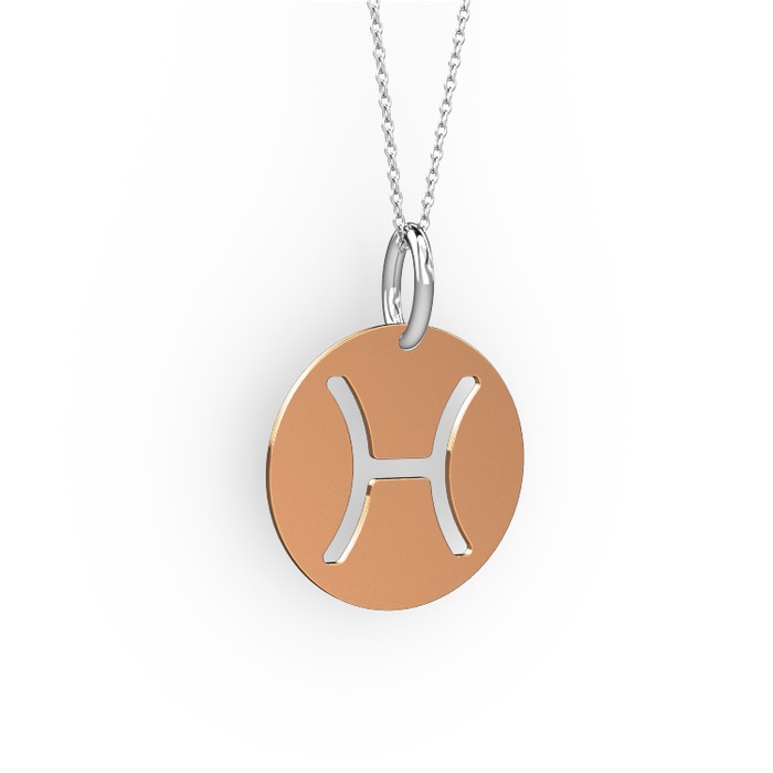 Balık Burç Kolye - 925 ayar rose altın kaplama gümüş kolye (40 cm beyaz altın rolo zincir)