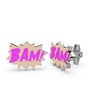 14 ayar beyaz altın kol düğmesi (Neon pembe mineli)